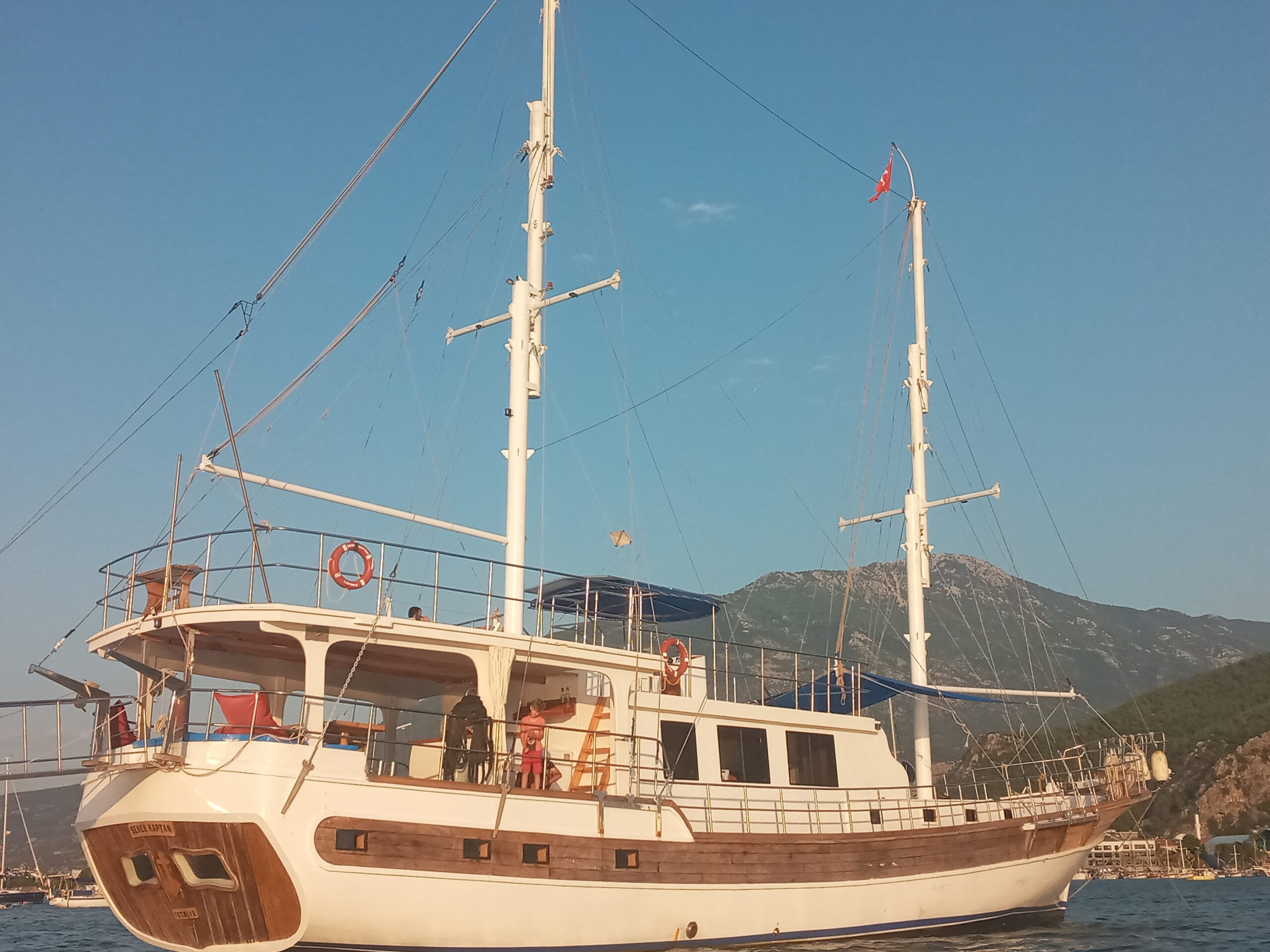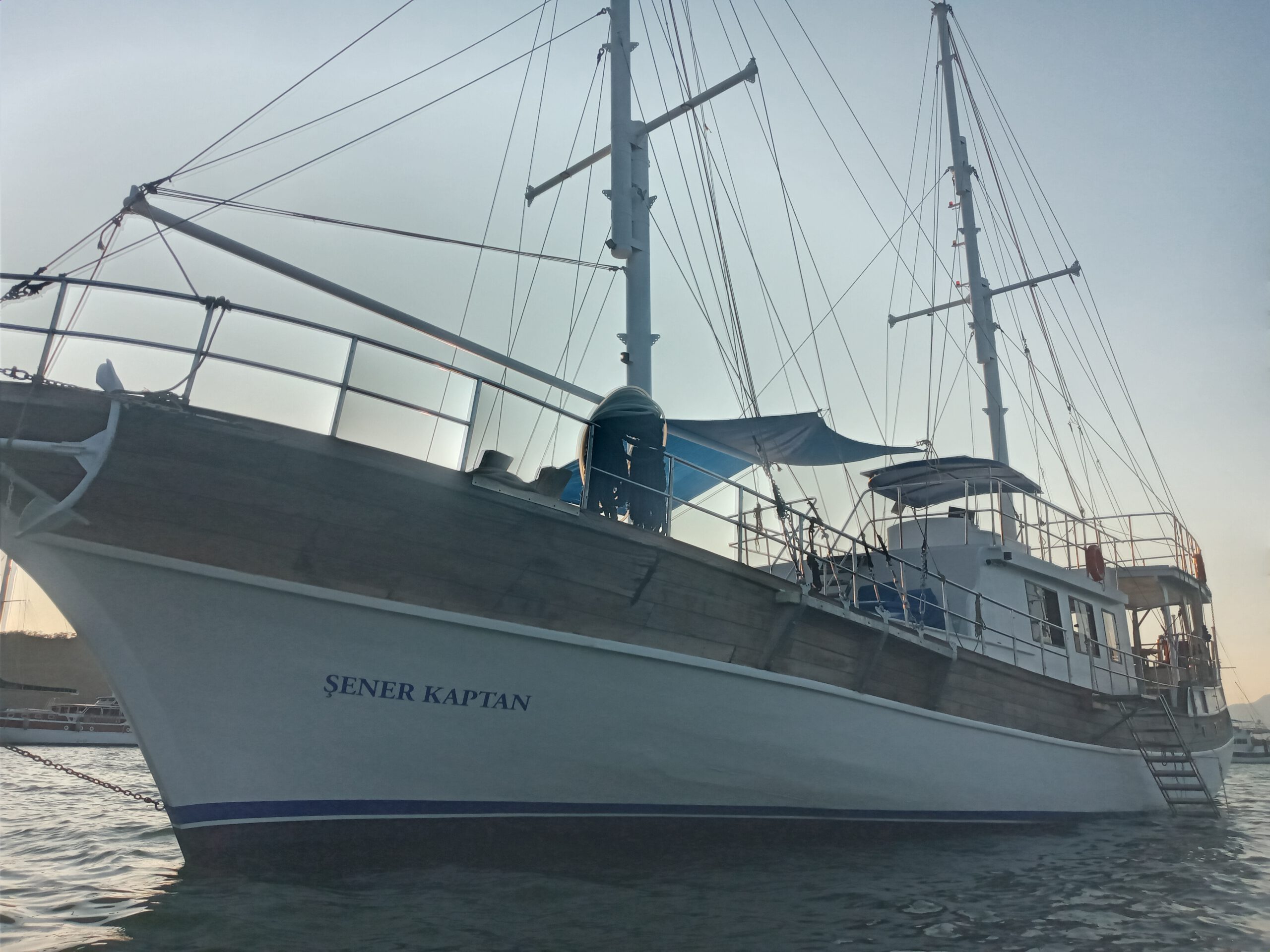 Die wunderschöne Guletyacht Şener Kaptan bietet auf 30 Metern allen Komfort, mit ihren 6 geräumigen Doppelkabinen mit eigenen Bädern und einem riesigen Aussenbereich wird sie schnell zu unserem ’schwimmenden Hotel’ und gibt uns eine Woche lang Geborgenheit inmitten der Naturschönheiten der Küstenlandschaft. Zwei Lieblingsbuchten am Tag werden uns verzaubern.